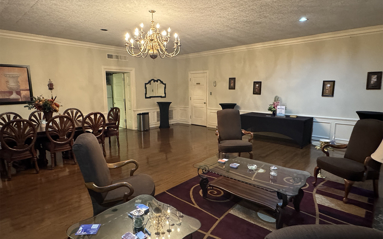 Our Parlor offers a warm, refined setting ideal for smaller gatherings, private meetings, or intimate celebrations. Thoughtfully furnished with a comfortable dining table and seating area, the space creates an inviting atmosphere for conversation and connection.